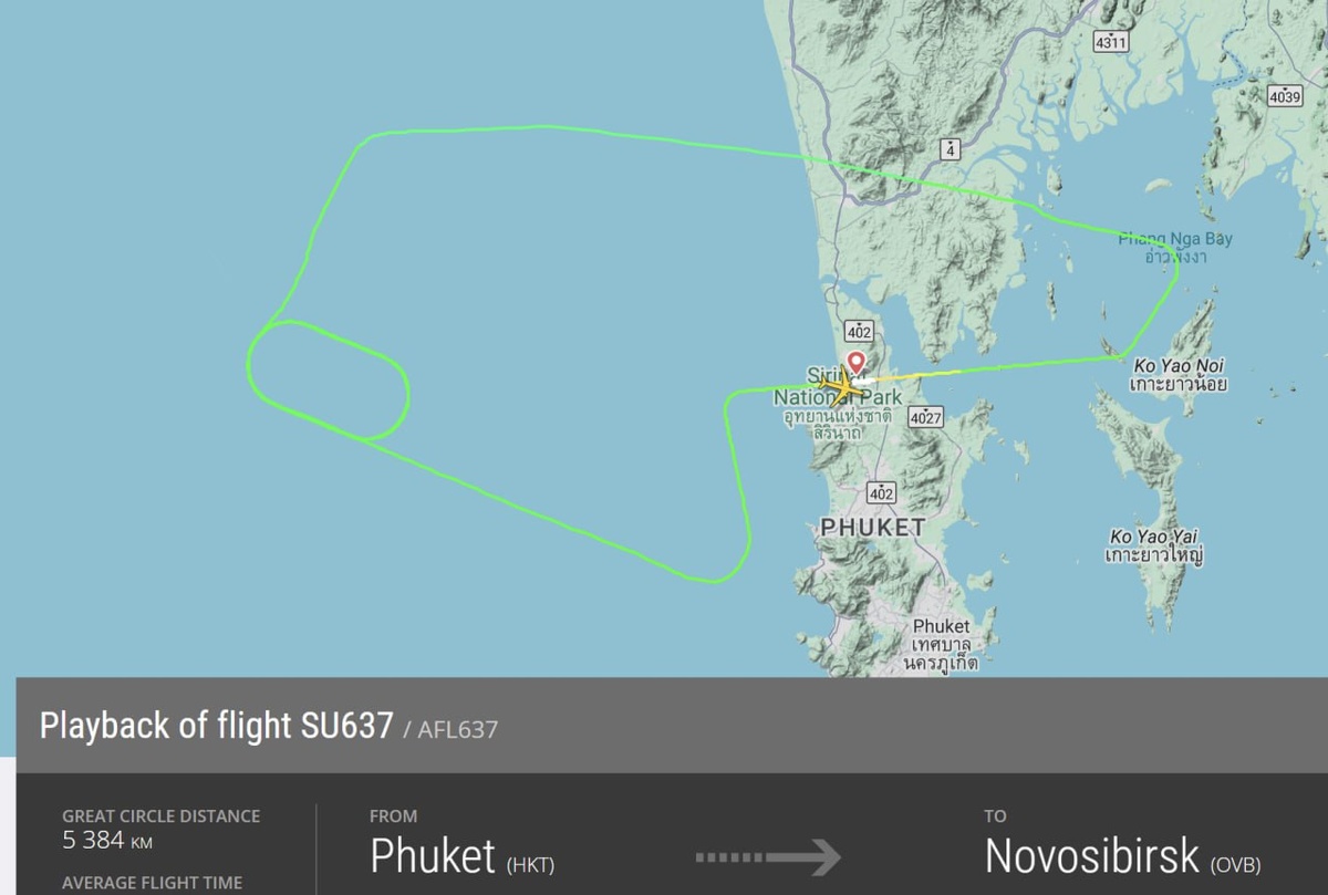 Самолет «Аэрофлота», выполнявший рейс SU 637 Пхукет – Новосибирск, вернулся в аэропорт вылета
