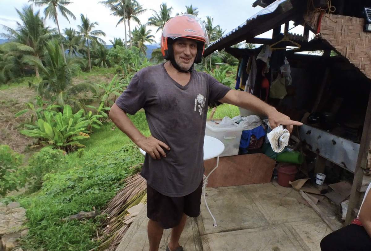 Короче, батя опять грохнулся с мотоцикла. И, если честно, я даже не удивился. У нас с ним уже целая коллекция этих мотоциклетных падений, можно, наверное, отдельную рубрику на Дзене заводить: «Как не надо ездить». А всё началось, как это обычно бывает, невинно. Купили первый мотоцикл, ещё в самом начале нашей филиппинской жизни. Батя и резкие манёвры У бати, вообще, особый стиль вождения. Вот, допустим, мы едем, я ему говорю: — Бать, я поссать хочу. Обычный человек бы поискал место, плавно съехал на обочину, да? А у бати — будто тревога красная: тормозит резко, чуть ли не юзом. Как будто я за секунду до катастрофы, и если не остановится — всё, конец трусам. Или я ему: — Туда поверни. А он — шшш, сразу тормоз, разворот, газ в пол. Как будто мы на гонках. Я за спиной, чуть не вылетаю. Несколько раз чуть в кювет не ушли, даже когда дорога прямая. Вот и получилось, что первое наше падение случилось довольно быстро. Первый краш — песчаный Мы тогда только-только начали обживаться на Филиппин