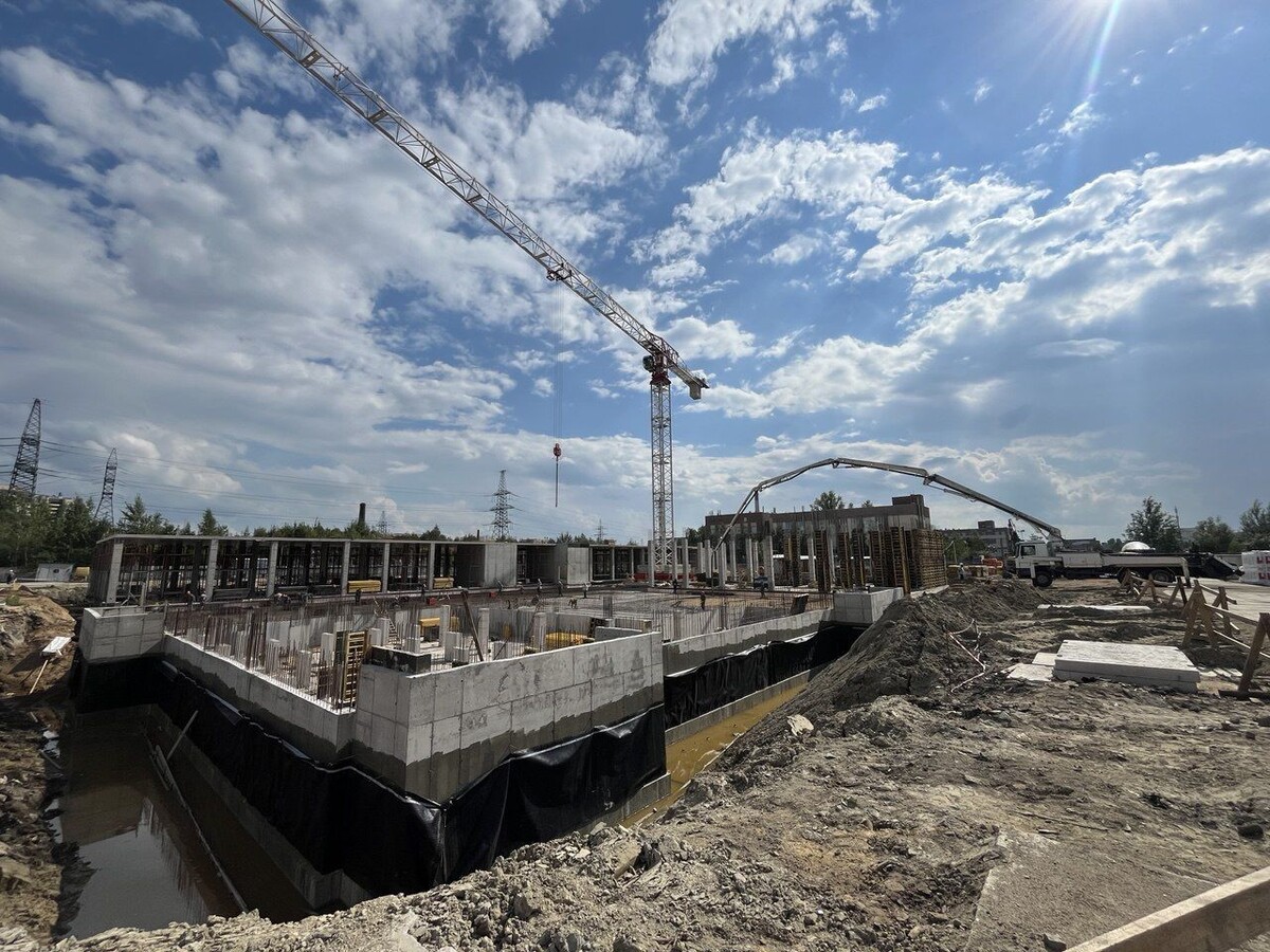 В квартале Полюстрово 24-27 Калининского района Санкт-Петербурга полным ходом идет строительство новой современной школы. На сегодняшний день завершены подготовительные работы и устройство котлована, на 90 % готов фундамент, а строители уже приступили к монтажу конструкций первого этажа. К концу года планируется возвести четырехэтажный корпус и закрыть тепловой контур здания, что позволит продолжить внутренние работы в зимний период. Об этом рассказал глава администрации Калининского района Михаил Асташкевич. Школа возводится на пересечении Лабораторной улицы и проспекта Маршала Блюхера. Проект соответствует современным петербургским стандартам и предусматривает создание комфортной образовательной среды: стадион с площадками для занятий спортом, бассейн, мастерские, лаборатории, просторные классы и зоны для отдыха учеников. Это уже пятая школа, строящаяся в районе за последние годы. Благодаря целенаправленной политике городских властей по развитию социальной инфраструктуры, темпы строи
