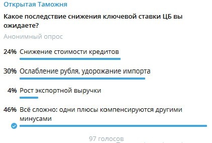 Пожалуй можно подвести промежуточный итог опроса о последствиях снижения ключевой ставки ЦБ для ВЭД