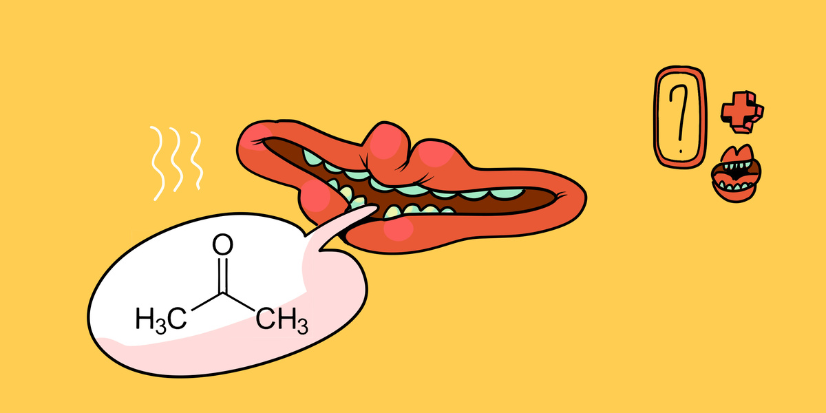 - Запах изо рта: Запах ацетона — это один из признаков того, что организм вошёл в состояние кетоза.