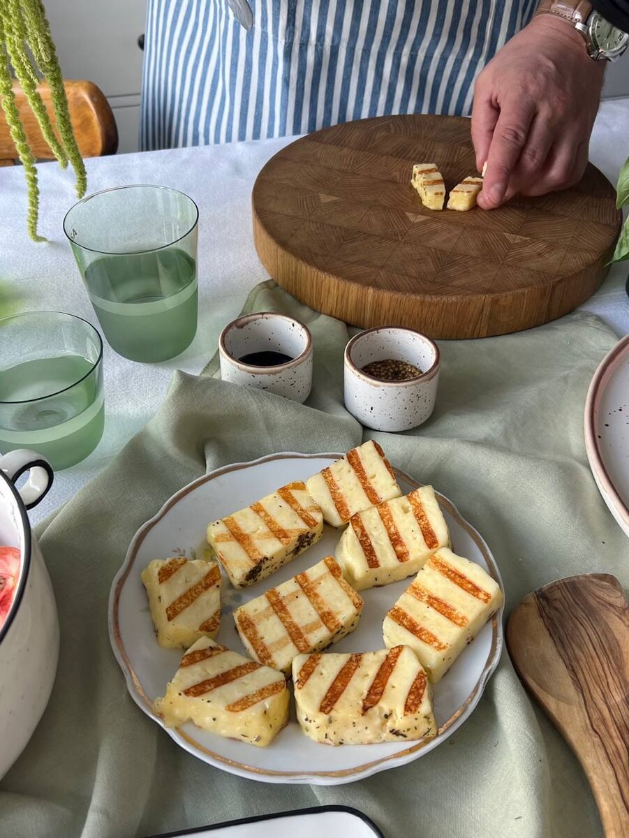 Учимся есть халуми как киприоты Халуми — свежий сыр для жарки на гриле, родом со средиземноморского о.Кипр. На родине традиционно сочетают халуми… с арбузом. 🍉 Арбузы в гастрономической культуре острова занимают особое место. Ломтики подают в ресторанах в конце или в начале трапезы, в супермаркетах выставлены ряды разрезанных пополам или на четвертинки идеально спелых и ярких арбузов Халуми с поджаристой корочкой и свежий арбуз — это гурманское сочетание точно стоит попробовать ❤️ 🔘 в формате канапе — ломтики сыра чередуют с кусочками арбуза 🔘 чтобы собрать салат, выложите на кусочки арбуза остывший халуми, оливки, листья мяты и посыпьте кунжутом. Заправьте смесью оливкового масла и винного уксуса