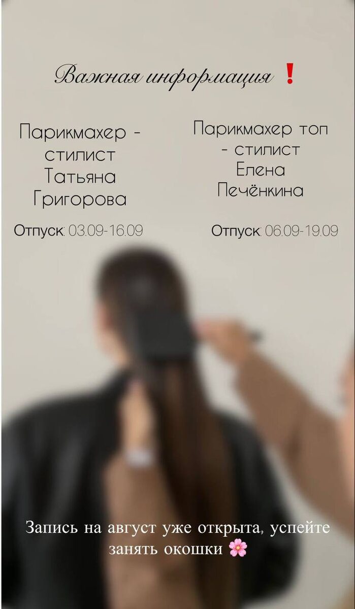 Стилисты Эстетикос Елена Печенкина и Татьяна Григорова в сентябре уходят в отпуск. На август запись открыта , запишитесь к своим мастерам заранее ‼️ Записаться можно здесь https://profsalon.org/o/J6Xwej Науки 17/6 +7 (965) 008-99-53 +7 (812) 491-00-65