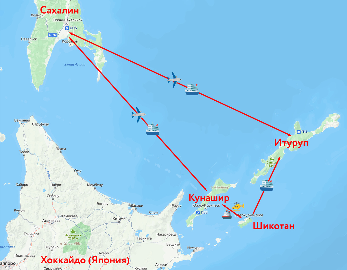 Итуруп — ✈️ Курильск (Ясный); 🛳 Курильск