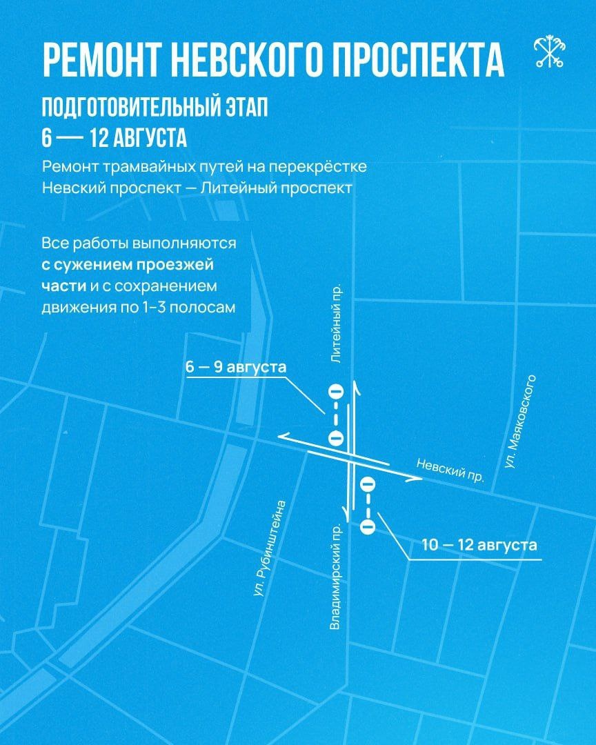 В Петербурге с 3 августа стартует ремонт Невского проспекта. С 6 по 12 августа движение автобусов и троллейбусов сохранится по существующим трассам. С 13 по 27 августа автобусы и троллейбусы пойдут по объездным маршрутам. С 11 августа увеличится количество поездов на «зеленой» линии метрополитена», рассказал вице-губернатор Кирилл Поляков в своем Telegram-канале. На весь период ремонта Невского проспекта будет организована выделенная полоса для общественного транспорта на Гороховой улице от Адмиралтейского проспекта до Малой Морской улицы. Появятся дополнительные остановки, скорректируют режим работы светофоров, запретят парковку автомобилей на объездных маршрутах. Схемы: Telegram-канал вице-губернатора Петербурга Кирилла Полякова Подпишись на Город+