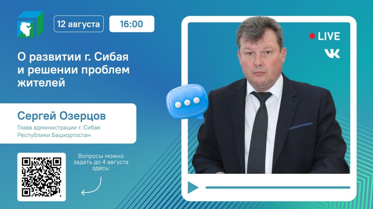 Сибай, столица башкирского Зауралья, празднует свое 70-летие! Город активно развивается, становится важным промышленным, деловым и логистическим центром юга Башкортостана. Какие проблемы волнуют город, и как они решаются? Что ждет Сибай в будущем? На вопросы жителей из ЦУР Башкортостана ответит глава администрации г. Сибая Сергей Озерцов. Прямой эфир состоится 12 августа 2025 года в 16:00. Есть вопрос? Отправьте его через портал Госуслуг https://pos.gosuslugi.ru/lkp/direct-line/9348/ до 4 августа включительно. 💚 ЦУР Башкортостана