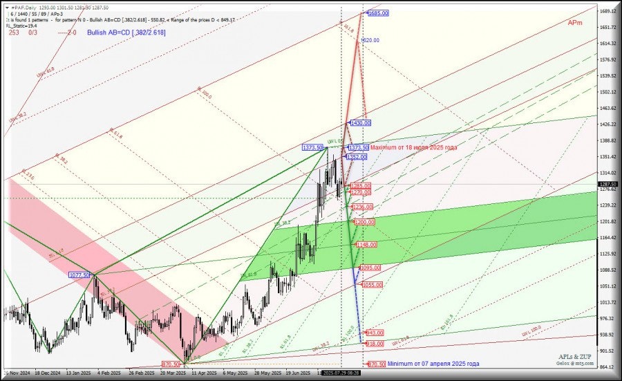https://basechop.ru/wordpress/?p=51538 Операционный масштаб Minor (таймфрейм Daily) Основные технические уровни для торговли #PAF-Daily– обзор вариантов движения c 30 июля 2025 года. Предыдущий обзор Palladium Current Month (таймфрейм h4) от 11.07.2025 г. 14:37 ____________________ Palladium Current Month Развитие движения #PAF-Daily с 30 июля 2025 года будет обусловлено отработкой и направлением пробоя границ зоны равновесия (1285.00 – 1352.00 – 1430.00) вил старшего операционного масштаба Minor-Daily c учетом отработки maximum 1373.53 от 18 июля 2025 года – детали смотрим на графике ниже. Нисходящее движение: При последовательном пробое нижней границы ISL38.2 (уровень поддержки 1285.00) зоны равновесия вил старшего операционного масштаба Minor-Daily и верхней границы канала 1/2ML Minute-h4 (1270.00) развитие движения Palladium Current Month может быть продолжено в границах канала 1/2 Median Line Minute-h4 (1270.00 – 1236.00 – 1200.00) и зоны равновесия (1200.00 – 1148.00 – …