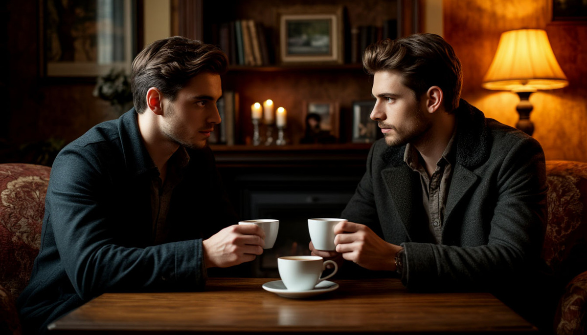 На лице — тень. В руках — кружка, дрожащая от горячего чая и раздражения.