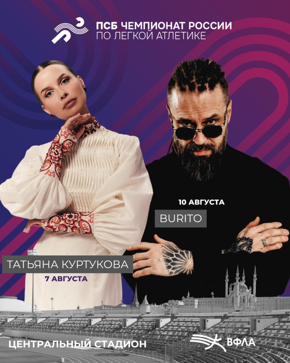 На чемпионате России по лёгкой атлетике, который пройдет в Казани, можно будет не только поболеть за любимых спортсменов, но и развлечься – после соревнований там выступит группа Burito! 🔥😍🔥 Выступление авторов хитов «По волнам», «Мама», «Возьми моё сердце» и «Сны наяву» запланировано на 10 августа во время вечерней сессии соревнований на Центральном стадионе Казани. Концерт станет частью насыщенной развлекательной программы для зрителей, которая будет сопровождать спортивную часть чемпионата. Ранее было объявлено, что церемонию открытия 7 августа украсит выступление Татьяны Куртуковой — автора хита «Матушка». Чемпионат России по лёгкой атлетике пройдёт с 7 по 10 августа и соберёт сильнейших спортсменов страны — от чемпионов мира до молодых звёзд. Помимо соревнований, зрителей ждут розыгрыши призов, фан-зона у стадиона, забеги роботов и медийные забеги, а также ночной старт по улицам города «Ночная Казань». Чак-чак Норрис