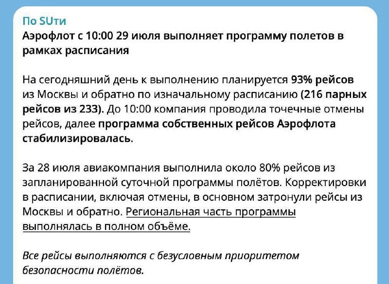 ✈️ Аэрофлот очухался После масштабной кибератаки Аэрофлот наконец-то в строю: с 10 утра рейсы пошли по расписанию, сайт подняли, регистрация снова открыта. Для тех, кто встрял в хаос вчерашних отмен — заработал отдельный контакт-центр. В компании заявляют: программа полётов стабилизировалась, всё работает «в штатном режиме». Ну что ж, теперь можно летать… пока сервера снова не упали. Подпишись, пока тебя не взломали вместо самолёта. #Techtaim