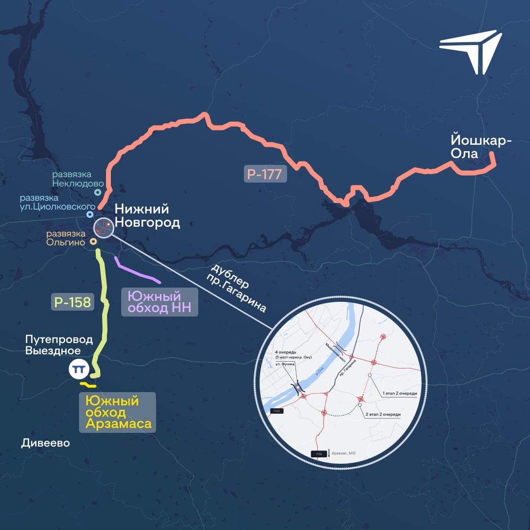 - Построены три крупные транспортные развязки, кардинально влияющих на транспортную обстановку: в д. Ольгино, п. Неклюдово и на улице Циолковского в Нижнем Новгороде.