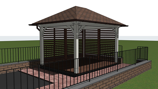 Визуализация проекта была выполнена до начала работ, что позволило согласовать детали заранее. Благодаря этому финальный результат полностью совпал с ожиданиями. Визуально беседка получилась лёгкой, гармоничной и максимально вписанной в окружающее пространство.