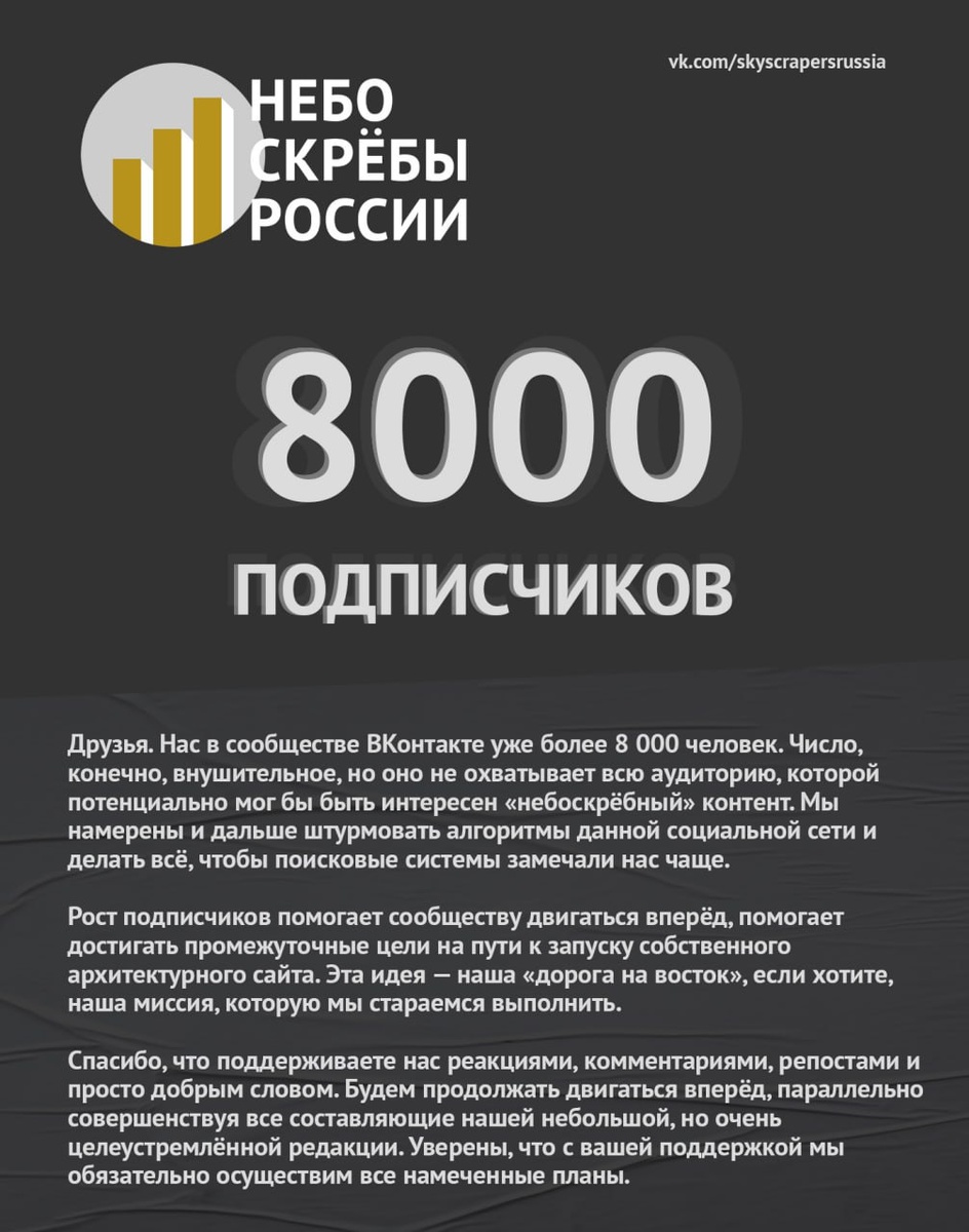 Наше сообщество ВКонтакте достигло отметки в 8000 подписчиков. Делимся хорошими результатами 😊