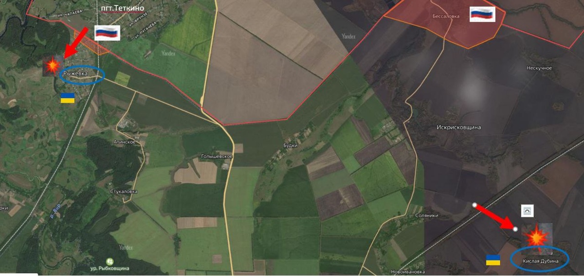 В районе пгт.Теткино противник пытался провести ротацию своих передовых подразделений. Перемещение техники ВСУ было своевременно вскрыто нашей разведкой, и в результате нанесения прицельных ударов артиллерией и FPV-дронами, враг был уничтожен.
