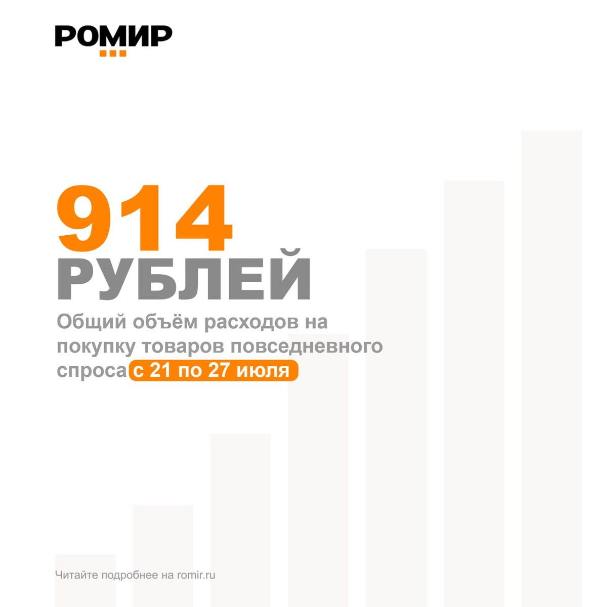 914 рублей составил размер среднего чека на прошедшей неделе с 21 по 27 июля