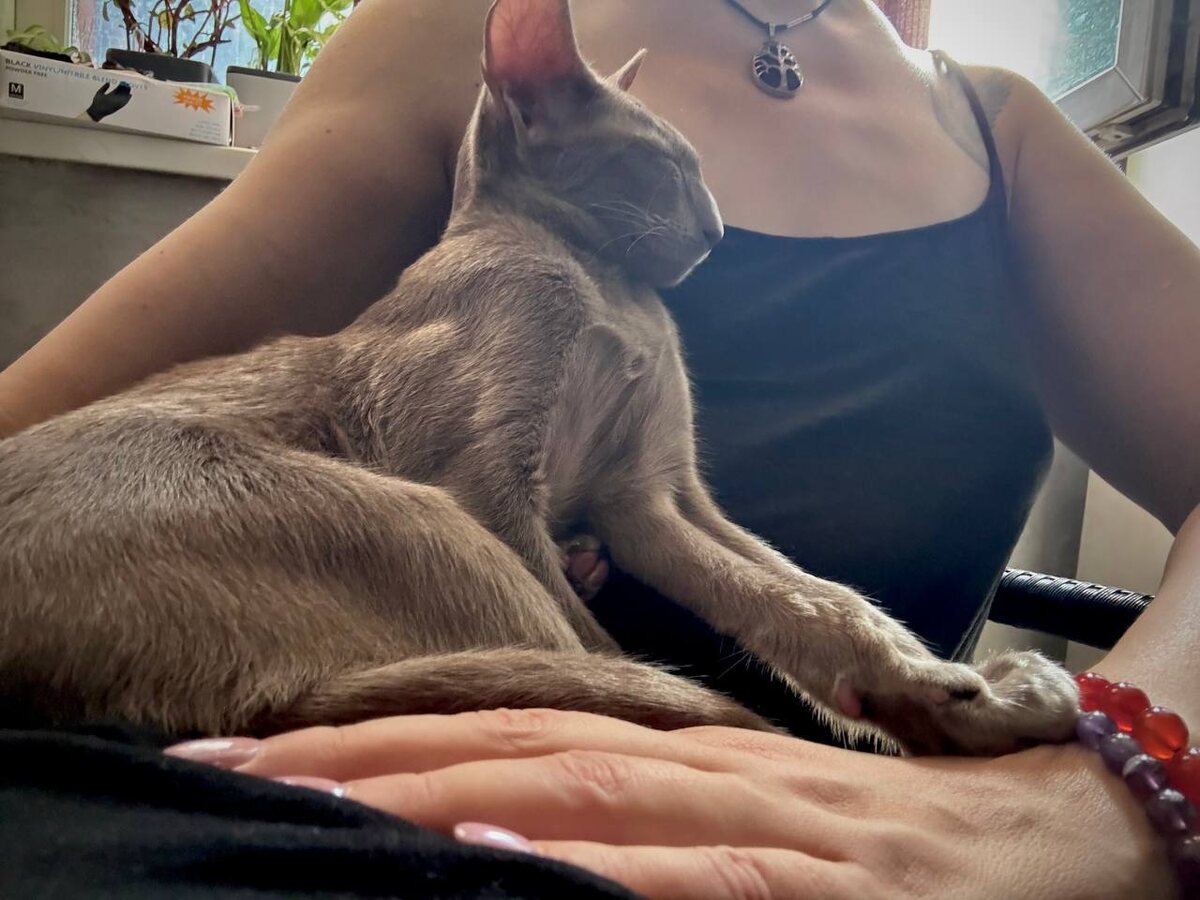Шерстка — жаль, что камера не передает — сияет и переливается всё больше. То ли мой уход так влияет с питанием, то ли наглаживания в шесть рук плюс гостевые, то ли то, что сам начал тщательно вылизываться. Глазоньки и носик почти очистились. Теперь он много рассматривает всё с интересом, не пришуриваясь и не пуская слёзы с сопельками. Еще дозаказала ему капельки (Дишу лечили такими, помните же в каком состоянии она к нам попала?), чтобы докапать курс.