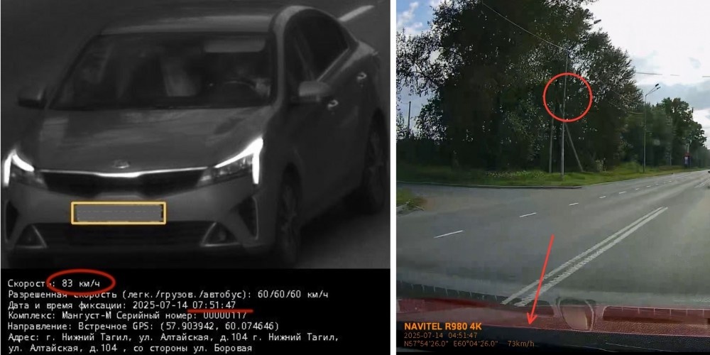 Автомобилисты Нижнего Тагила массово сообщают о получении необоснованных, по их мнению, штрафов за превышение скорости, выписанных одним и тем же комплексом фиксации. Водители делятся идентичными историями и планируют коллективные действия. Поводом для дискуссии стала публикация в сообществе «Тагил без ям», в которой автомобилист обвинил камеру «Мангуст-М» на ул. Алтайской, 104 в «выдумывании» скорости. Он получил три штрафа за 83 км/ч, хотя, по его заверению, в каждом случае скорость была разная. В качестве подтверждения он опубликовал запись с видеорегистратора: на кадрах, сделанных в то же время, что и снимок с камеры, скорость автомобиля по данным системы спутниковой навигации ниже зафиксированной в постановлении. Аналогичное сравнение провёл другой автомобилист (на регистраторе сбит часовой пояс, подчеркнул он): В комментариях десятки горожан подтвердили, что получили постановления, в которых указана скорость, незначительно превышающая порог, — чаще всего 83 или 84 км/ч. При э