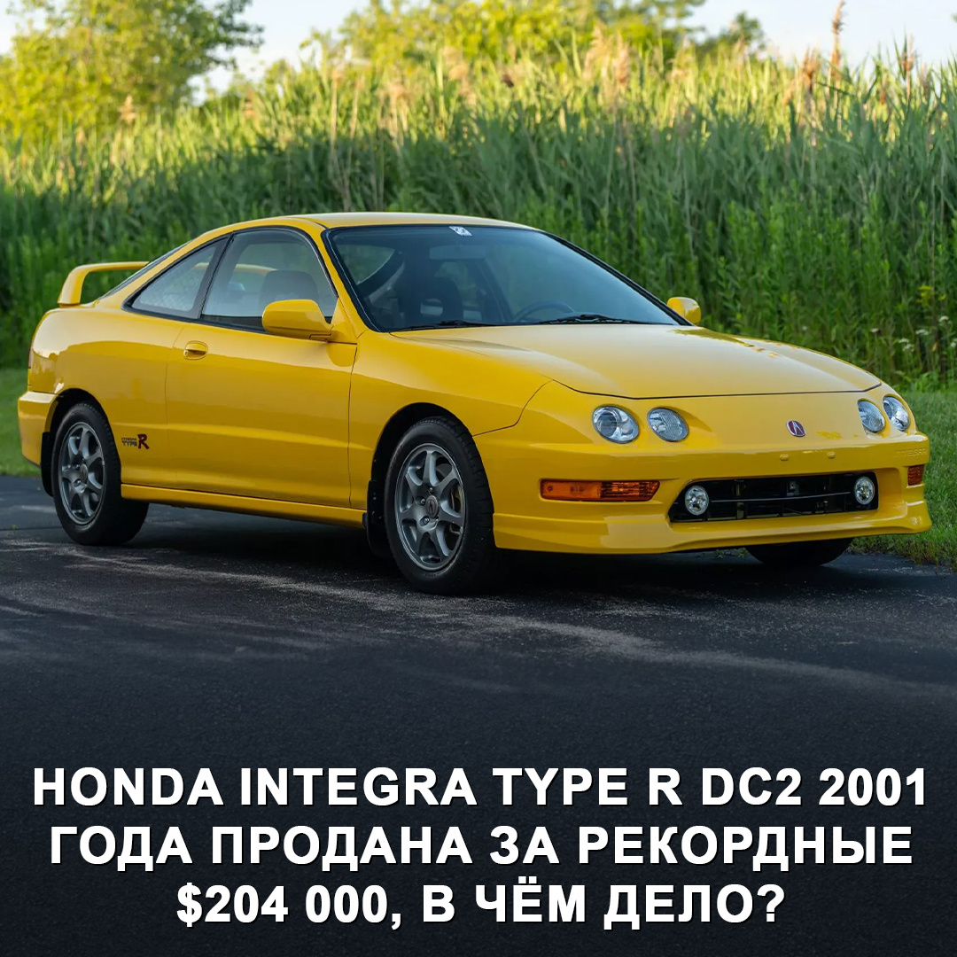 Один из экземпляров 2001 года был продан за эту сумму 😳 Сделка прошла на интернет-аукционе в США, где Integra продавалась под брендом Acura. Кругленькую сумму отдали за экземпляр в фирменном ярко-жёлтом цвете Phoenix Yellow с пробегом всего 7 700 км. Последние 11 лет машина была в частной коллекции и почти не ездила, но вовремя проходила все ТО. Автомобиль полностью комплектен, сохранилась даже оригинальная магнитола. Integra Type R DC2 оснащена 1,8-литровым атмосферником на 195 л.с. (176 Нм), 5-ступенчатой механикой и самоблоком. Разгон до сотни — 6,9 сек., максималка — 241 км/ч. В прессе её часто называют автомобилем с одним из лучших переднеприводных шасси. Стоит того? 🤔 #дромновость #сша #аукцион #honda #integra
