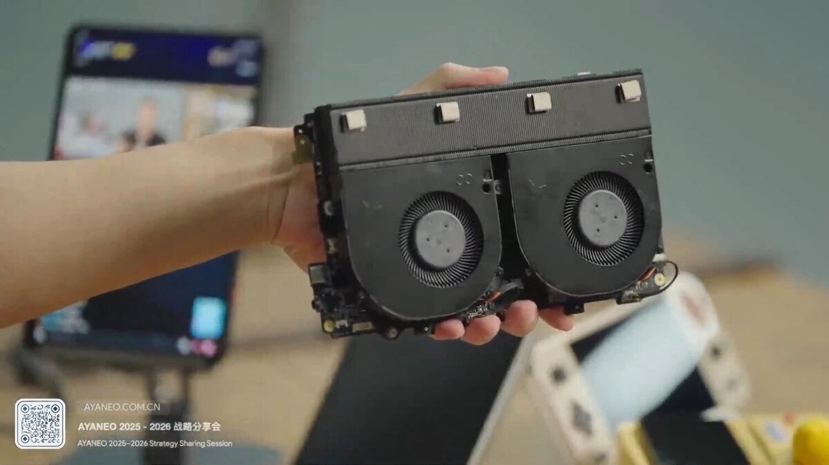 Компания Ayaneo анонсировала портативную игровую консоль Next 2, которая станет первым устройством бренда на базе мощного процессора AMD Ryzen AI Max+ 395. Новинка позиционируется как флагманская модель и преемник Ayaneo Next с Ryzen 7 5820U, хотя у компании есть более производительные устройства с Ryzen 7 8840U. Выпуск запланирован на 2025 год, но точная дата не объявлена. Next 2 оснащена 16-ядерным процессором на архитектуре Zen 5 и встроенной графикой Radeon 8060S с 40 вычислительными блоками RDNA 3.5. Устройство получит 8-дюймовый дисплей, батарею высокой емкости (неизвестно какой именно) и систему охлаждения с двумя вентиляторами, что делает прототип довольно громоздким. Ayaneo обещает прорыв в автономности и терморегуляции. Кроме того, компания намекает на мини-ПК на той же платформе, который составит конкуренцию продуктам Aoostar и других компаний, которые намерены делать аналогичные решения. https://youtu.be/SfOJU3jf9_g