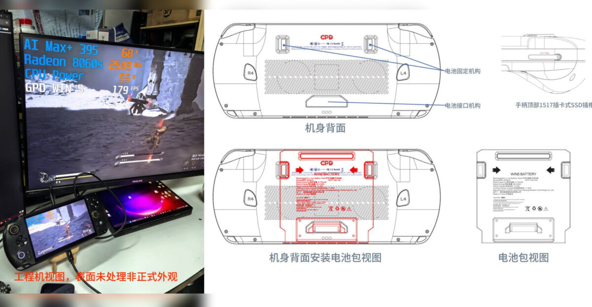 В GPD показали подключение внешнего аккумулятора к игровому КПК Win 5 с APU AMD Ryzen AI Max+ 395