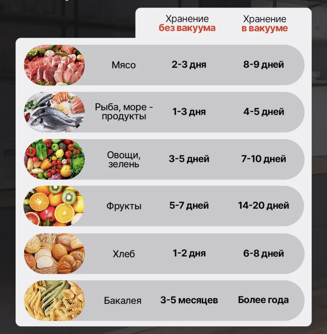 - Максимальный вакуум для мяса и сыров