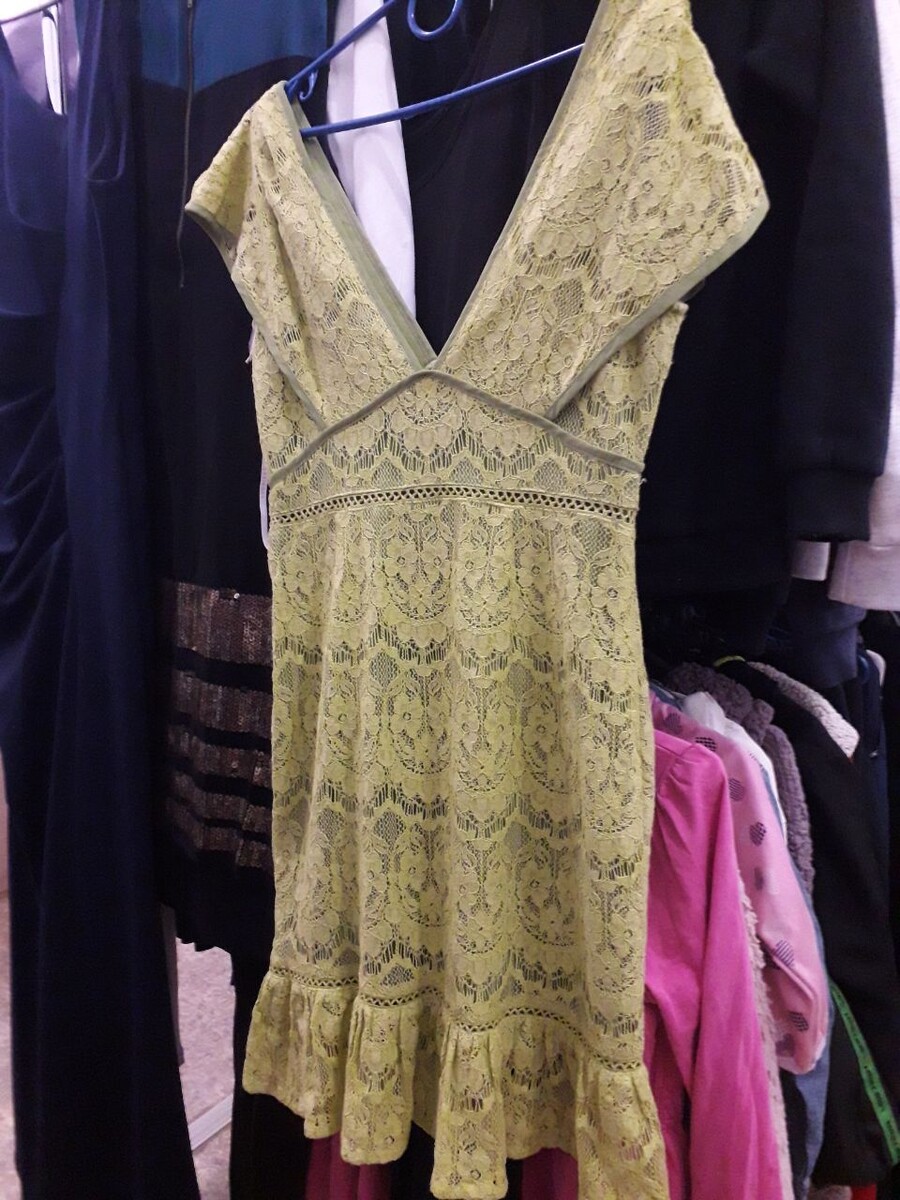 За время , когда я стала чаще ходить не в масс маркеты , а в секонд хенды и стоки наловчилась просчитывать от самой дорогой до минимальной цены в определенный день . Чаще всего даже просчитывать ничего не нужно , ведь в большинстве секонд хендов , которые я посещаю цену дня пишут на неделю вперед. Вот и в этот раз я пришла на минимальную цену дня - 299 рублей. Да , многие хорошие вещи разбирают еще в самые первые дни , но и на распродаже есть на что посмотреть. Платье фисташкового цвета из узорчатой ткани , подчеркивает силуэт , с V-образным вырезом на груди . Его цена- 87 рублей. Похожее платье из узорчатой ткани нежно-розового цвета от британского бренда , который существует с 2 006 года - boohoo .Красивое мини-платье без глубоких вырезов , а также подчеркивает фигуру. Стоимость- 70 рублей. Блузка в горох из легкой и дышащей ткани бирюзового цвета , завязывающаяся сзади на спине, 10 размера от PAPAYA — российский бренд одежды и аксессуаров. Ее стоимость составила всего лишь 32 ру