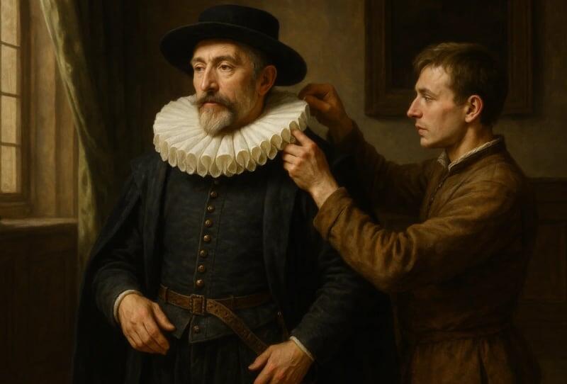 3. Это требовало целой армии обслуживания. Раф нельзя было просто постирать и погладить. Его стирали специальные прачки, крахмалили до состояния картона, а затем укладывали складку к складке специальными гофрировальными щипцами, раскалёнными на огне. Одно неверное движение — и дорогая ткань сожжена. Содержать такой воротник в чистоте и форме было отдельным, очень дорогим удовольствием.