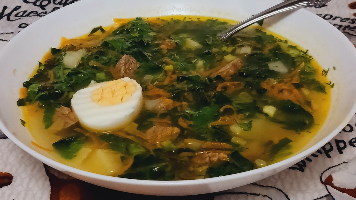 В этой статье я поделюсь рецептом их приготовления в домашних условиях. Начнём с варки бульона. Возьмите говядину, нарежьте небольшими кусочками и варите на медленном огне 1,5-2 часа, не забывая снимать пену. Процедите бульон и верните в него мясо. Теперь подготовим остальные ингредиенты. Мелко нарежьте зелень: щавель, шпинат, укроп, петрушку и зелёный лук. Картофель порежьте брусочками, а морковь натрите на крупной тёрке. Репчатый лук порежьте кубиками. Добавьте картофель в подсоленный бульон. Обжарьте лук до золотистого цвета. Когда лук станет прозрачным, добавьте морковь и перемешайте. Когда масло окрасится в оранжевый цвет, зажарка готова. Добавьте зажарку в суп, когда картофель будет мягкий. Ещё нужны яйца. Следите за временем, чтобы яйца не переварились. Мелко нарежьте яйца. Введите зелень и яйца, когда суп с зажаркой закипит. Проверьте на соль и, если нужно, добавьте ещё. Готовый суп должен получится ароматным и сытным. Приятного аппетита! https://rutube.ru/video/3a98e6faeae61f