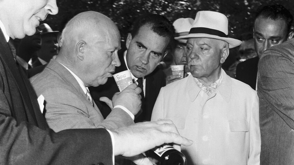 Летом 1959 года на первых полосах западной прессы появились фотографии советского лидера Никиты Хрущева, наслаждающегося «Пепси-колой». «Хрущев хочет быть более общительным. Будь и ты более общительным. "Пепси" в этом поможет», – гласила реклама.
