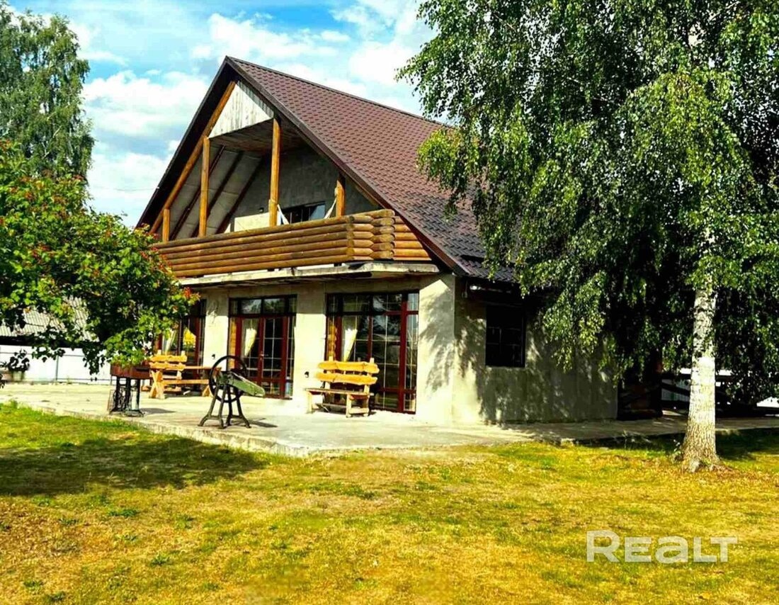 В живописном Вилейском крае, в 88 километрах от Минска, в деревне рядом с лесом и речкой, продается новый коттедж — идеальный вариант для тех, кто хочет переехать за город без переплат и долгих ремонтов. Или хочет попробовать себя в агротуристического бизнеса. Особенная изюминка — просторная баня из лиственницы и пруд. И главное – стоит это все недорого. Локация интересная – 3 километра от Вилейки, 88 километров (около часа езды) до Минска. Рядом озеро с оборудованным пляжем, река Вилия и знаменитое Вилейское водохранилище. Дом здесь современный, двухэтажный, построен из газосиликатных блоков 2024 году. Общая площадь – 189,2 м². На первом этаже — просторная кухня-гостиная с панорамными окнами и большим камином, две спальни, санузел и котельная. На втором этаже — общий холл, четыре уютные спальни с гардеробными и выходом на балконы, санузел. Отапливается дом твердотопливным котлом, но на участок уже подведен газ. Водоснабжение из собственной скважины, канализация местная. На территории
