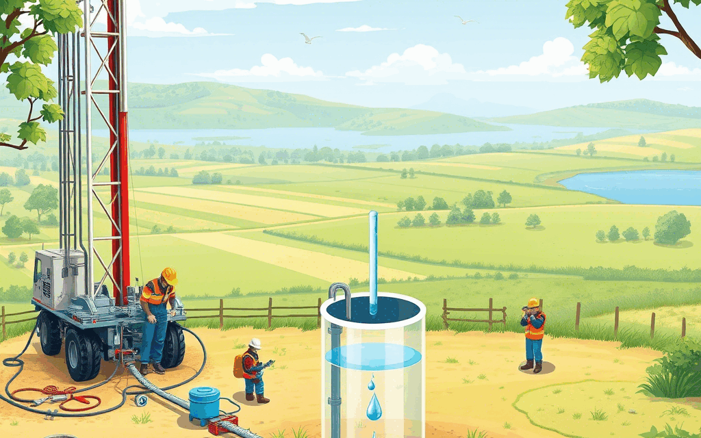 - Определение Дебита (Опытная Откачка): Замер реальной производительности скважины с помощью временного насоса.