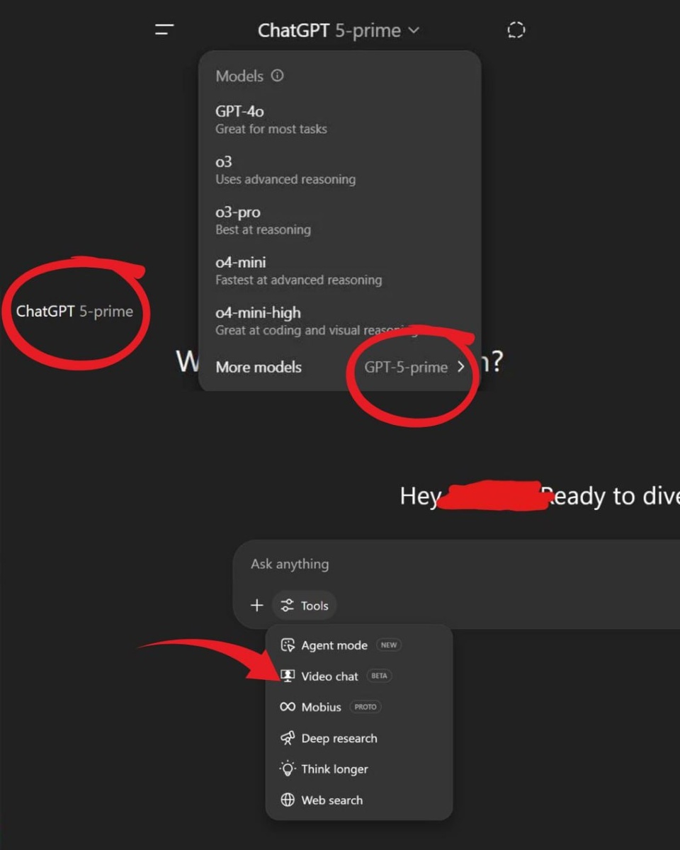 Некоторые пользователи ChatGPT уже замечают новую модель под названием GPT5 prime, которая появляется рядом с GPT4o и другими старыми версиями в интерфейсе (см. картинку).
