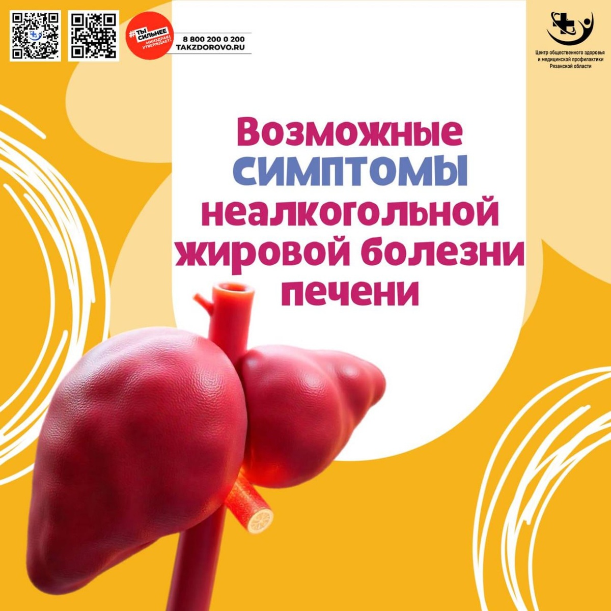 🚨 Идёт Неделя профилактики заболеваний печени! *(28 июля - Международный день борьбы с гепатитом)* Неалкогольная жировая болезнь печени (НАЖБП) часто протекает скрыто, но может проявляться: ▫️ Постоянная усталость и слабость ▫️ Тяжесть/дискомфорт в правом подреберье ▫️ Тёмные круги под глазами ▫️ Желтоватый налёт на языке ▫️ Сосудистые звёздочки на теле ▫️ Кожный зуд без сыпи ⚠️ Важно! У 80% пациентов симптомы отсутствуют до поздних стадий! Что делать? ✅ Раз в год - УЗИ печени ✅ Контроль АЛТ, АСТ, ГГТ (анализы крови) ✅ Диета с ограничением сахара и трансжиров #ЗдороваяПечень #НАЖБП #Симптомы #ЗдоровоеБудущее62 #ЗдороваяРязань Не ждите симптомов - проверьте печень заранее! 🏥 По данным исследований, у 30% людей с НАЖБП болезнь прогрессирует до фиброза.