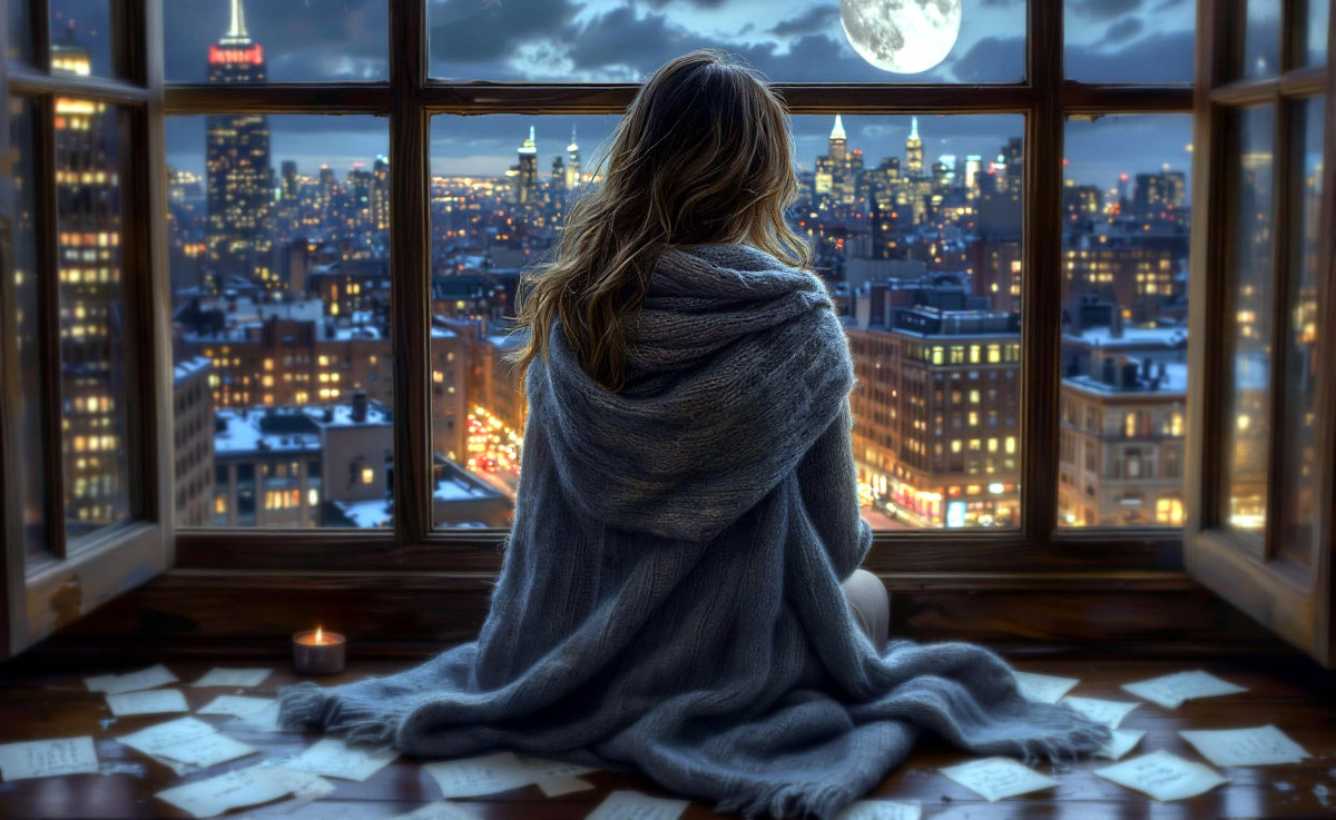 Ночь. Комната погружена в синеву лунного света, и только тени от ветвей за окном шевелятся на стене, будто пытаются что-то нашептать. Я осторожно касаюсь твоего плеча — так, словно боюсь разбить хрустальную паутину этого момента. Ты оборачиваешься, и в твоих глазах отражаются те же звёзды, что горят над городом. Но я знаю: это лишь сон. Очередной мираж, сотканный из тоски.