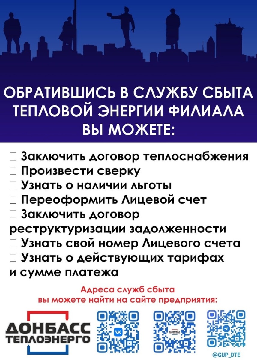 ❗️ГУП ДНР «ДОНБАССТЕПЛОЭНЕРГО» информирует