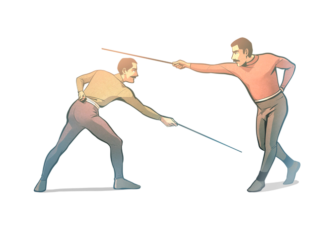 Прежде чем приступить к рассказу о европейских прикладных стилях работы тростью, хотелось бы подчеркнуть один важный нюанс. Материалов, охватывающих все аспекты использования трости, до нашего времени дошло совсем немного. Это особенно касается фехтования и самообороны с тростью: у истоков дисциплины владельцы и мастера многочисленных школ вели между собой суровую конкурентную борьбу, по итогам которой в историю вошли лишь отдельные общепризнанные (и оставшиеся в живых) авторитеты.
