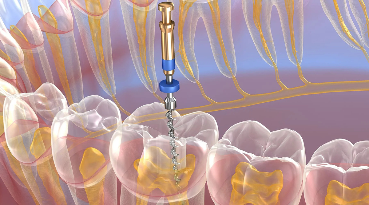 Простыми словами: у вас осталась «труба» от зуба — и в неё вставляют стержень, чтобы можно было «надстроить» верхнюю часть коронкой.