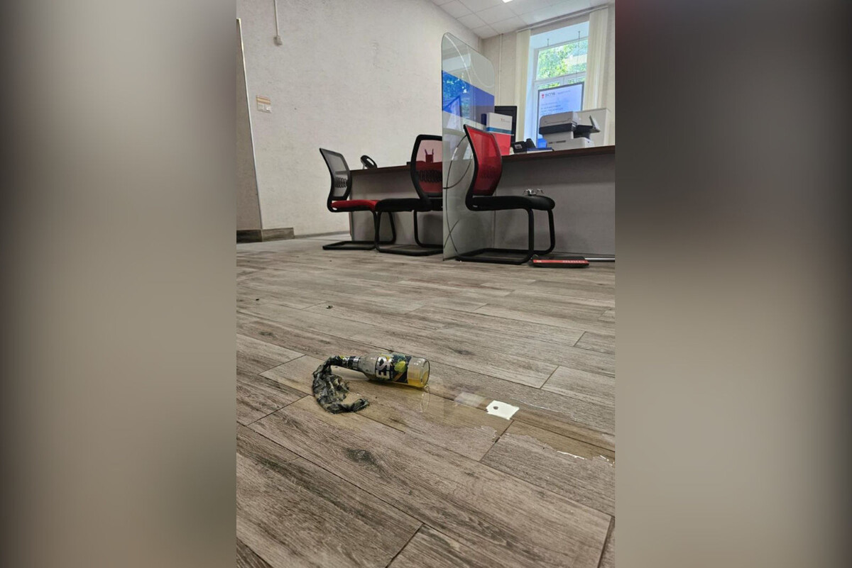 Видео: молодой человек пытался поджечь отделение банка в Пушкине «коктейлем Молотова»
