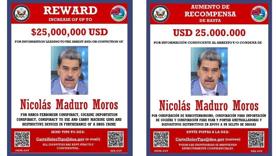 Минфин США опубликовал информацию о том, что Штаты объявляют награду за голову президента Венесуэлы Мадуро. Будто бы он террорист и наркобарон. @nemediatema