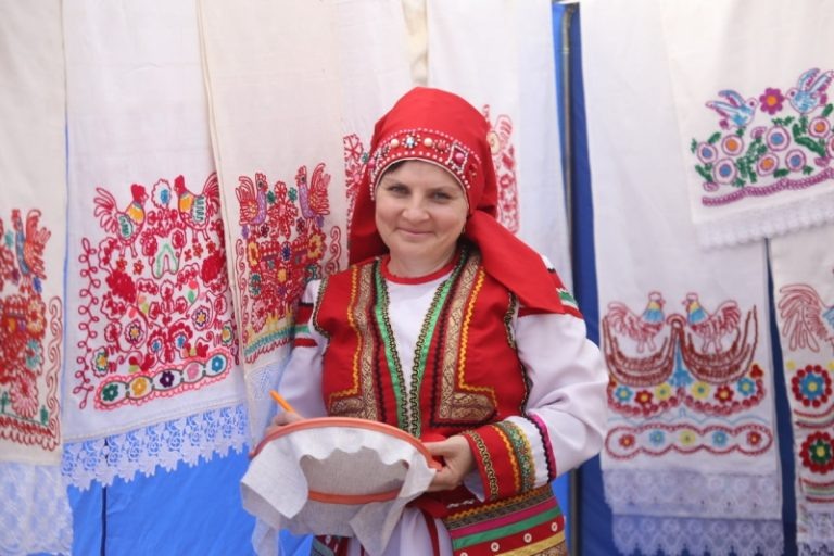Мастерица из Дубенок вышивает свадебные мордовские рушники