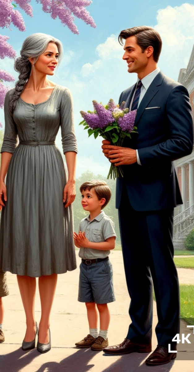 Она в красивом светлом платье держала букет сирени, её глаза светились от счастья....