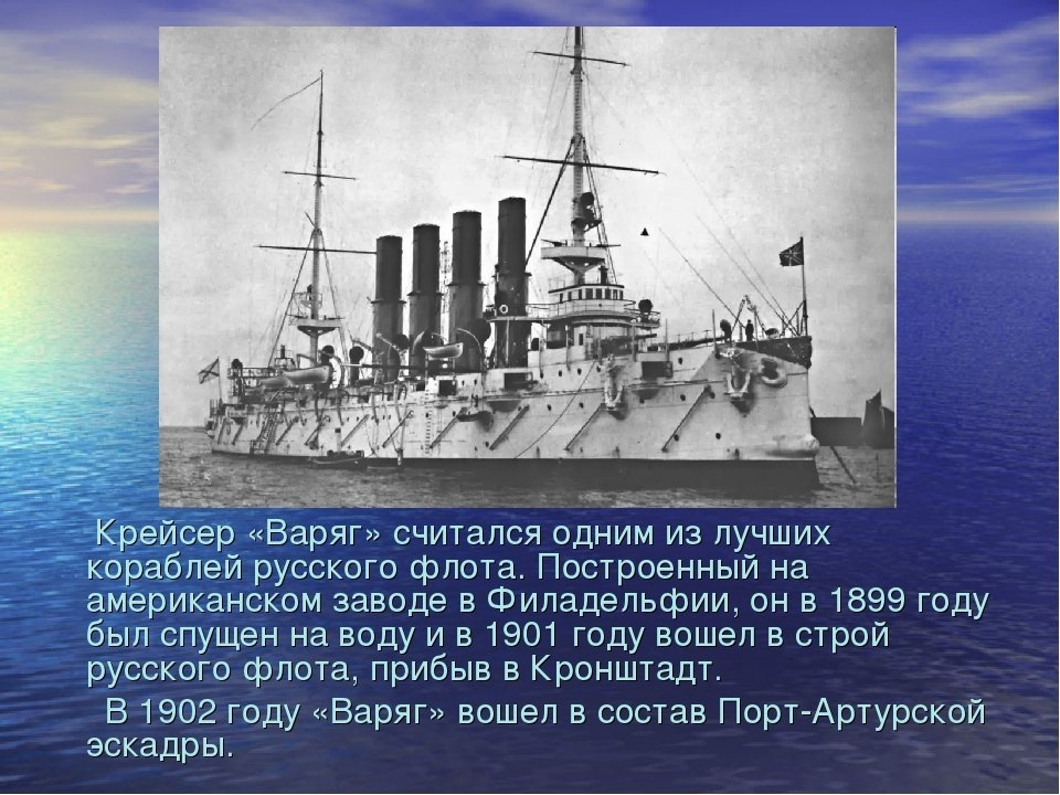 В раннем детстве я услышал о героическом бое крейсера «Варяг», а потом увидел и прекрасный художественный фильм о нём. Этот фильм показывают и сейчас - к сожалению, слишком редко.