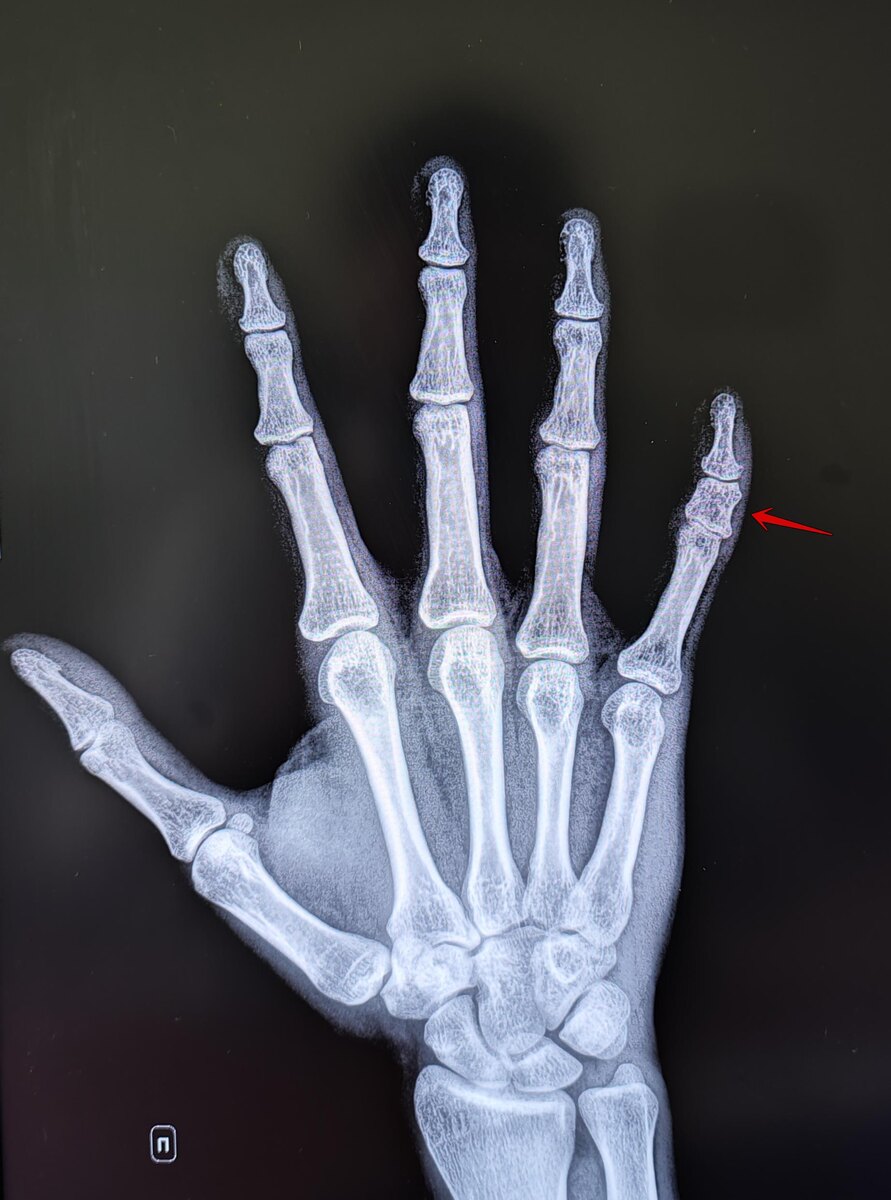 Это врождённая аномалия развития, характеризующаяся укорочением пальцев кистей и/или стоп из-за недоразвития или отсутствия фаланг. На Р-граммах правой кисти в 2х проекциях: травматических, деструктивных изменений не выявлено. Структура костной ткани не изменена. Средняя фаланга пятого пальца укорочена, утолщена. По остальным отделам кисти-без явной костной патологии. Заключение: Врожденная аномалия развития правой кисти- брахидактилия (брахифалангия) средней фаланги пятого пальца правой кисти. Категория годности с данным диагнозом по ст.67(Отсутствие, деформации, дефекты кисти и пальцев), г) при наличии объективных данных без нарушения функций-Б3(годен к в/сл с незначительными ограничениями). https://t.me/MME_SurgeryRadiolodgy https://vk.com/club223629464