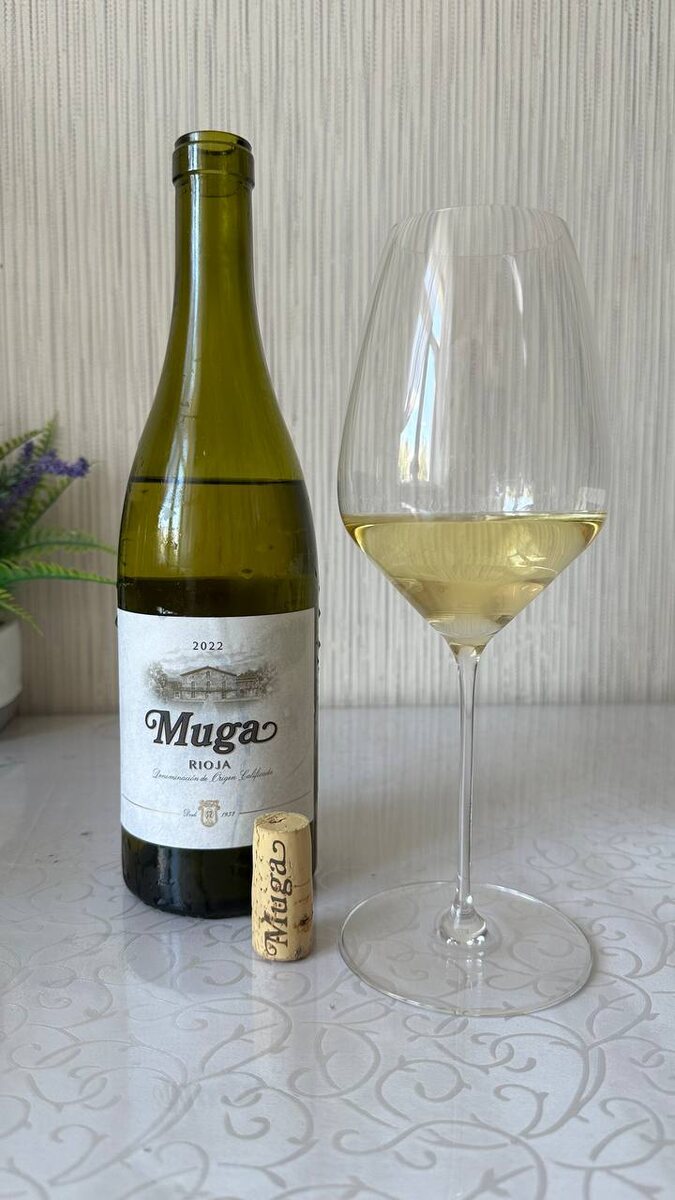 Rioja Muga blanco Элу решал протестировать выдержанную белую Риоху. Вот, к примеру, мне нравится выдержанная виура из этого региона, но тут все сложнее и купажнее! "Риоха, Испания 2022, розлив в марте 2023 Внутри Виура, Мальвазия, Гарнача бланка. Аромат свежий и сложный: полевые цветы, минералы, зубная морозно-мятно-шалфеевая паста, фрукты. Текстура напитка маслянистая - чувствуется бочка. Когда вино разливается во рту, верхним небом чувствуется горечь. Лимоны и грейпфруты, косточка абрикоса. Производитель на этикетке указал: Сусло мацерировали с виноградной кожицей, и после брожения в бочках вино оставляли на осадке на три месяца с регулярным перемешиванием с использованием техники батонажа. Батонаж это перемешивание осадка шестом - батоном, французский термин. 14 градусов ощущаются. Чем-то напомнило более простое Массо Антико Вердека Шардоне. Жареную белую рыбу/сыры морбье и раклет в пэйринг. Бокал Ридель Велоче Рислинг. Всего 1.200 в мае 2025 у DP. За такое взрослое вино ценник см
