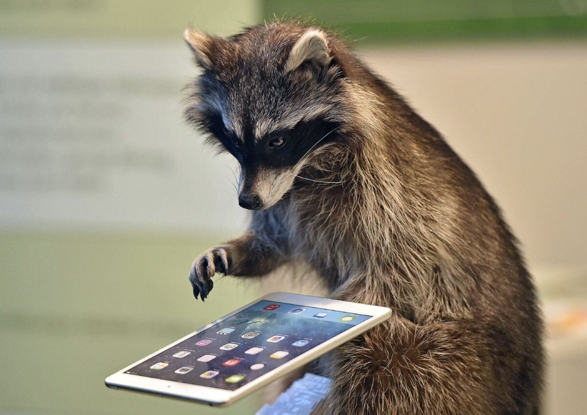 Я вижу в экране нас троих: уставшую девушку, слегка лысеющего меня и енота с выражением лица: «Я знаю, что вы оба слабое звено».