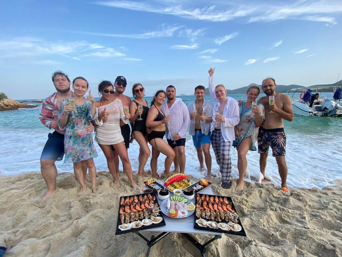 Отправление на скоростном катере с пирса Саттахип. Остановка для снорклинга. Прибытие на остров, где вас ждут тени деревьев и спокойный отдых. Купание, снорклинг, плавание на сапборде — для активных любителей водных развлечений. Рыбалка для тех, кто ищет трофей. К обеду (порционному) команда приготовит BBQ Seafood (креветки, кальмары, рыба) и сашими, а также подаст фрукты и белое вино. Атмосфера полного релакса и уединения!