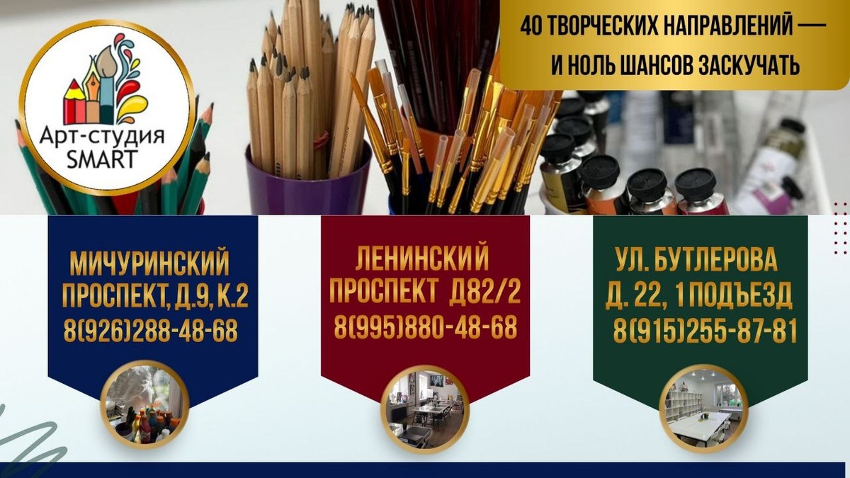 🎨 Где прячется вдохновение? Иногда — в тюбике акрила. Иногда — в тишине перед первым мазком. Но чаще всего… 📍 По следующим адресам: 🌿 Мичуринский проспект, д. 9, к. 2 м. Ломоносовский проспект(выход №2) ⏱ 10 минут от метро, и ты уже держишь кисть 🅿️ Бесплатная парковка 📞 8 (926) 288-48-68 🌇 Ленинский проспект, д. 82/2 13 подъезд, домофон 370В м. Университет / Октябрьская 🚶 20 минут пешком — идеально для прогулки с мыслями о будущем шедевре 📞 8 (995) 880-48-68 🌸 Ул. Бутлерова, д. 22, 1 подъезд м. Беляево / Калужская 🖌 Здесь живёт нежность: акварель, гуашь, акрил с Еленой Реутовой 🕒 Пн–Чт, с 11:00 до 20:00 📞 8 (915) 255-87-81 Каждая студия — как отдельная планета 🪐: со своей атмосферой, преподавателями и чашкой кофе, которую ты пьёшь, глядя на то, как краска растекается по бумаге. 🌟 Приходи туда, где вдохновение — не в теории, а в пространстве. И пространство — у нас. #артстудиясмарт #адресаSMART #рисованиевмоскве #творческиеместа #гдеучатвидеть