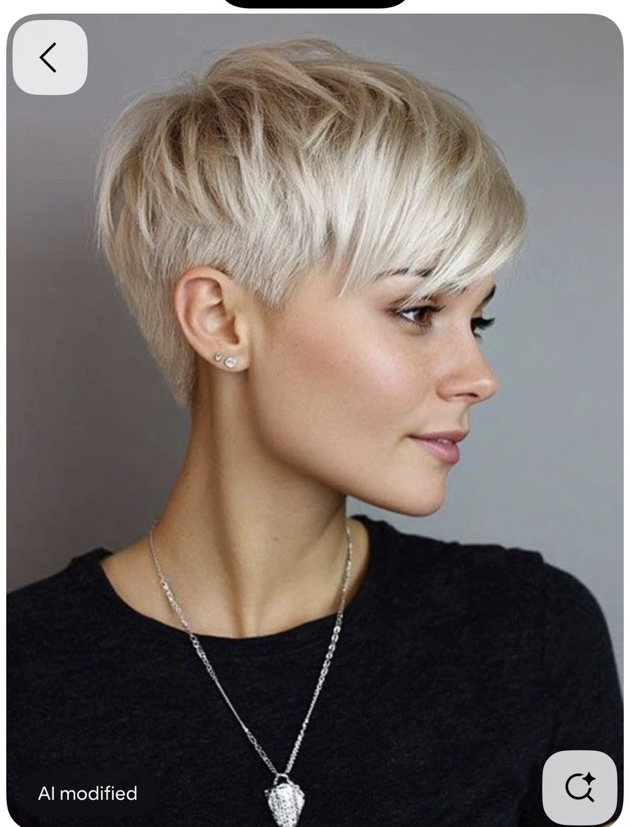 Иногда смотришь на две фотографии — и кажется: ну это же одна и та же стрижка. Только цвет разный, да возраст модели. А потом приглядываешься и понимаешь: совсем нет. Потому что форма — не только про длину и направление. Это про акценты. И вот здесь они решают. В первом варианте — верхнем — чётко читается форма «шапочки». Всё подчёркнуто, особенно затылок. Височные зоны оформлены коротко, чисто, аккуратно. Над ухом ничего не свисает, линия плотная, чёткая. Лицо приподнимается, скулы становятся главными, всё выглядит собрано и интеллигентно. Очень хорошо смотрится на женщинах зрелого возраста, особенно если черты лица выразительные и хочется добавить энергии. 🟢 Подбор стрижек по вашим фото Во втором варианте, который снизу, переходы мягче. Волосы над ушами удлинены, форма более «в потоке». Переход на затылке не такой яркий, он как будто вписан в движение. Эта форма менее строгая, она про текстуру, про живость, про чуть больше свободы. Очень хорошо ложится на молодые лица, или на тех,
