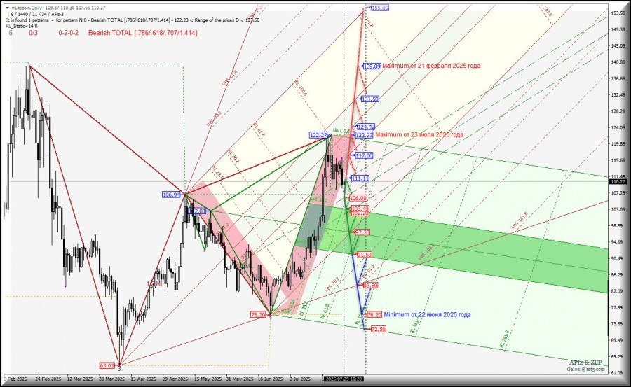 https://basechop.ru/wordpress/?p=51568 Операционный масштаб Minor (таймфрейм Daily #Litecoin– Daily – основные торговые уровни и обзор вариантов движения – c 30 июля 2025 года. ____________________ #Litecoin-Daily Движение #Litecoin-Daily с 30 июля 2025 года будет обусловлено границами канала 1/2 Median Line Minute-h4 (111.11 – 106.00 – 102.20) и зоны равновесия (103.40 – 97.30 – 91.50) вил младшего операционного масштаба Minute-h4 – детали отработки этих уровней показаны на графике ниже. Нисходящее движение. В случае пробоя нижней границы ISL61.8 (уровень поддержки 91.50) зоны равновесия вил младшего операционного масштаба Minute-h4 нисходящее движение #Litecoin продолжится к контрольной линии LTL (83.60) вил старшего операционного масштаба Minor-Daily с перспективой достижения minimum 76.20 от 22 июня 2025 года. Восходящее движение. При возврате #Litecoin выше верхней границы канала 1/2 Median Line вил младшего операционного масштаба Minute-h4 – пробой уровня сопротивления
