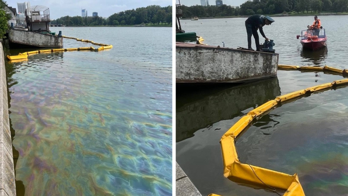 На Свислочи в Минске произошла утечка нефтепродуктов — Фото